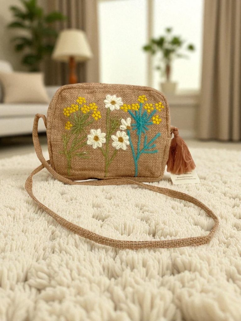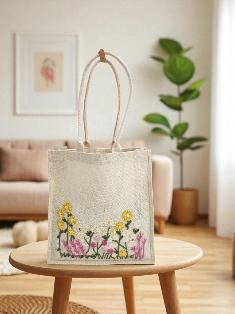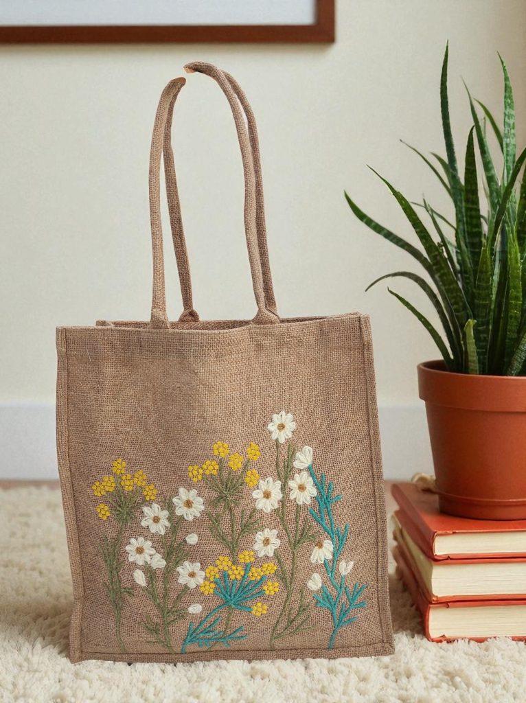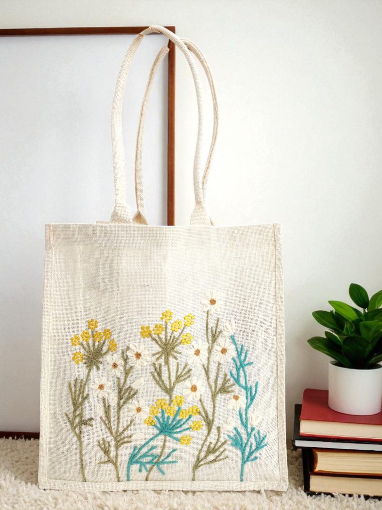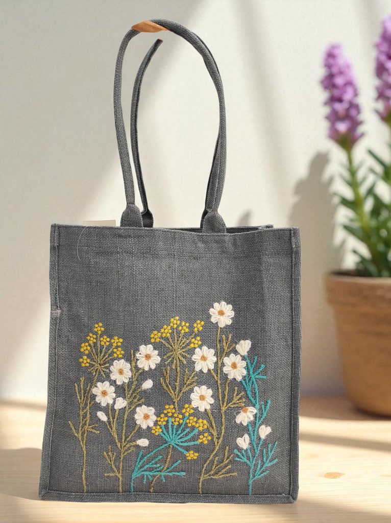 Hand-Embroidered Jute Tote