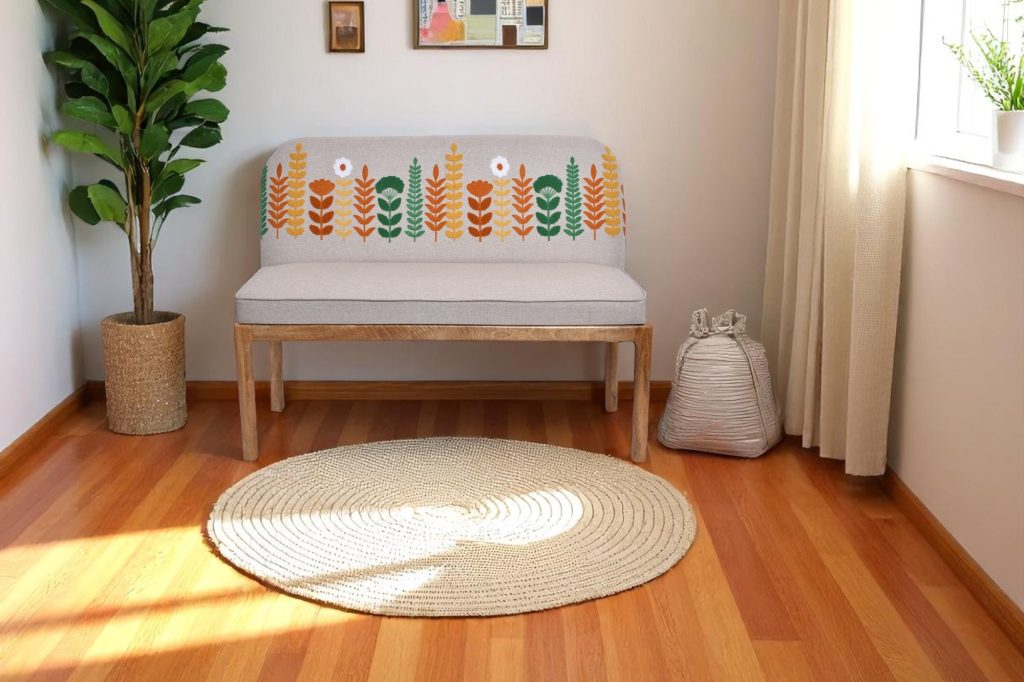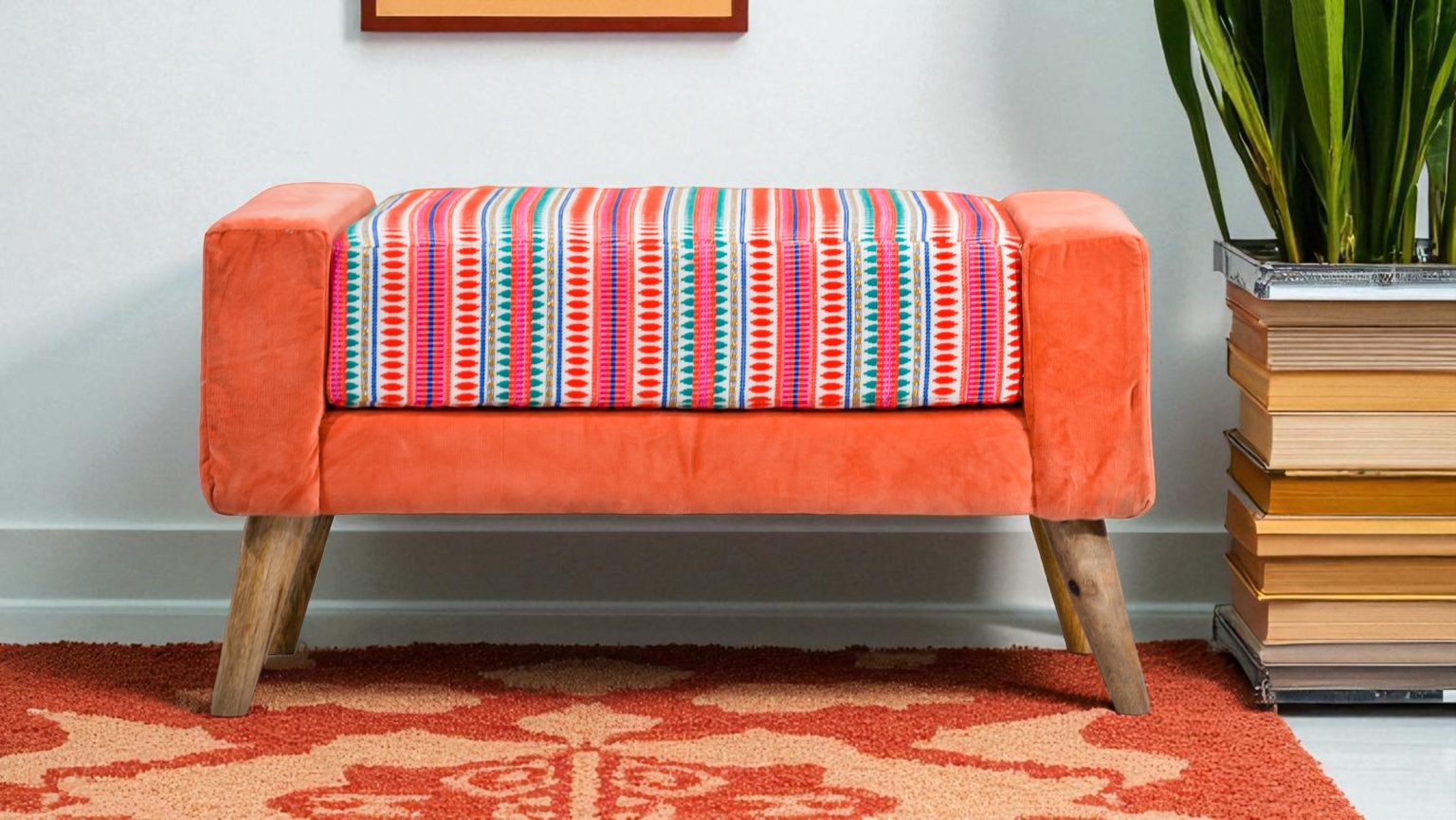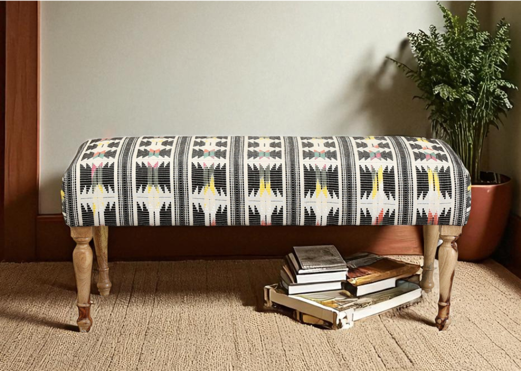• The Striped Bench: This bench exudes a vibrant and playful energy with its bold striped pattern. The solid wood frame and comfortable cushioning make it perfect for adding extra seating or a touch of personality to your living room.